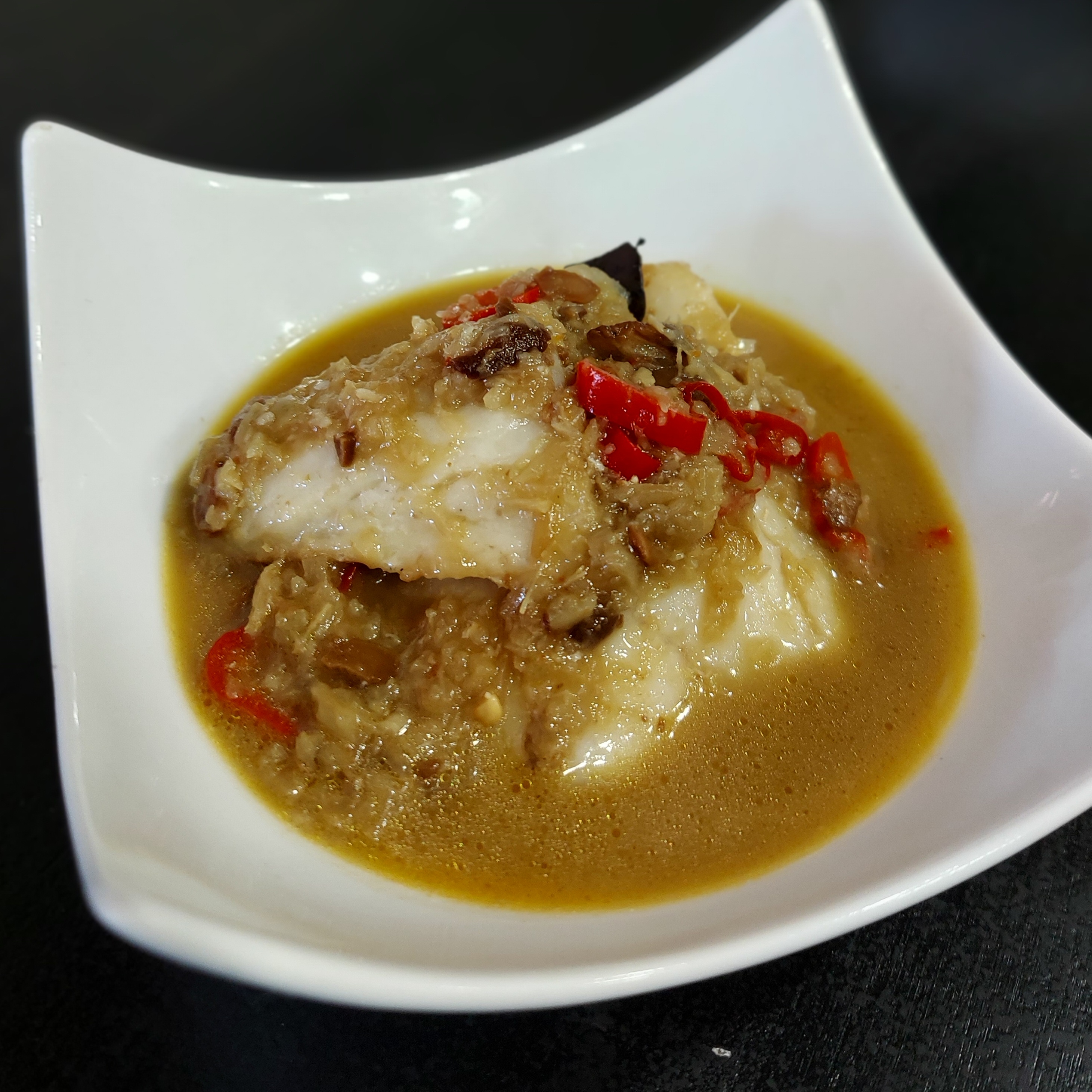 Gulay Ikan TaoTjo, white fish fillets in a curry with fermented soy bean paste