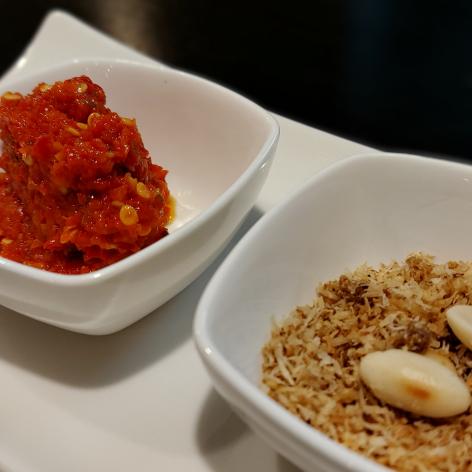 Accompanied by Krupuk, homemade sambal and serundeng