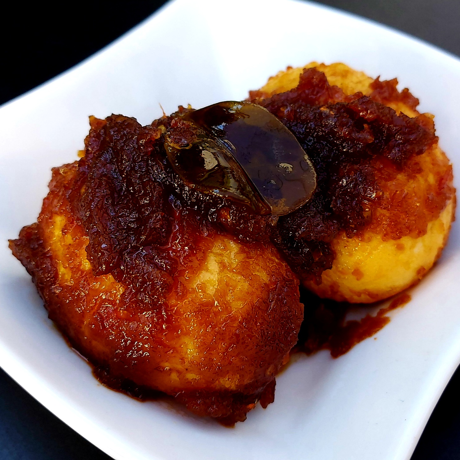 Sambal goreng telor, boiled and deep fried eggs in a spicy chili paste